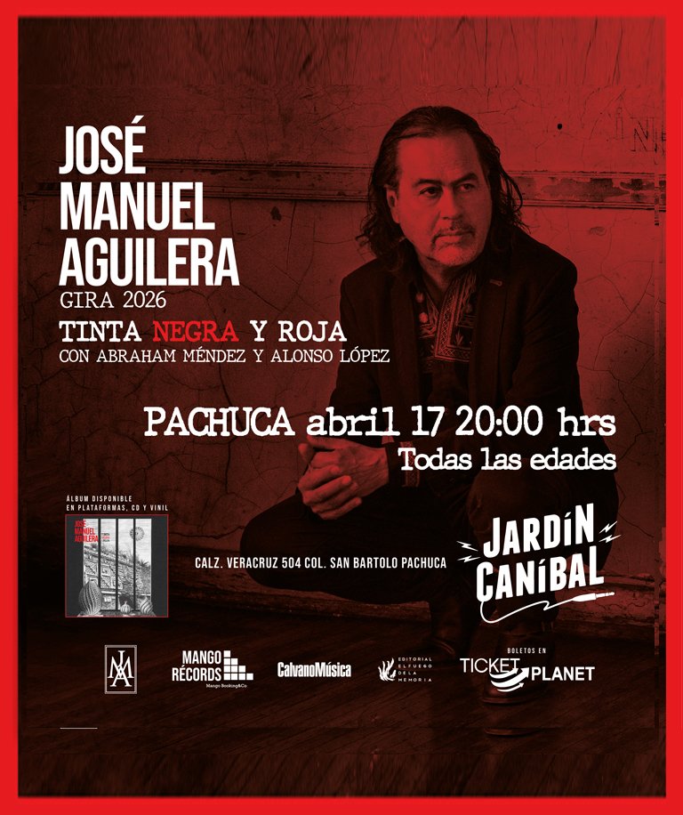 JOSÉ MANUEL AGUILERA PRESENTA TINTA NEGRA Y ROJA JARDÍN CANIBAL PACHUCA 17 abril, 2026